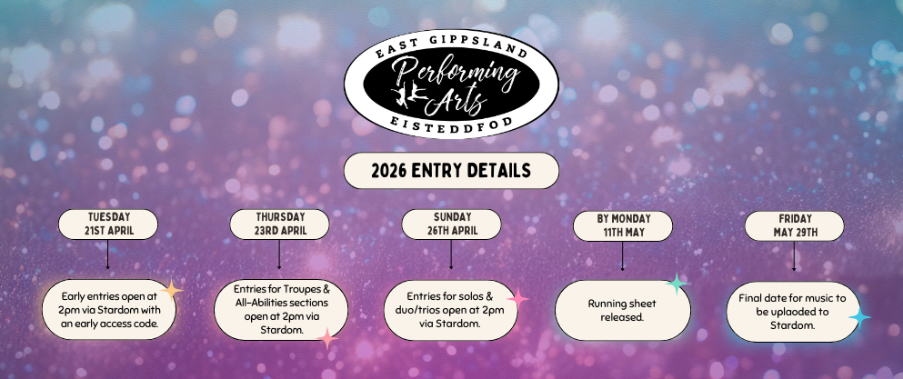 Our purpose is to host an inclusive eisteddfod in Bairnsdale, East Gippsland, celebrating and supporting amateur dancers in a welcoming and encouraging environment.